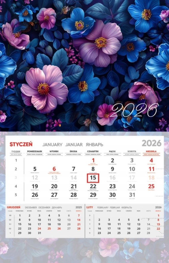 Kalendarz ścienny jednodzielny